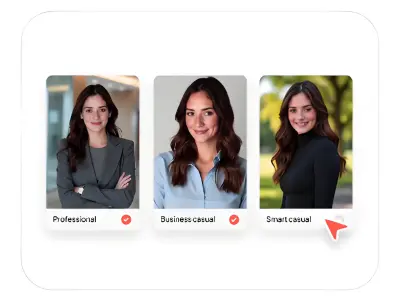 Mistura e combina fundos, roupas, cores, estilos e poses para criares retratos personalizados e adaptados ao teu contexto profissional e pessoal.